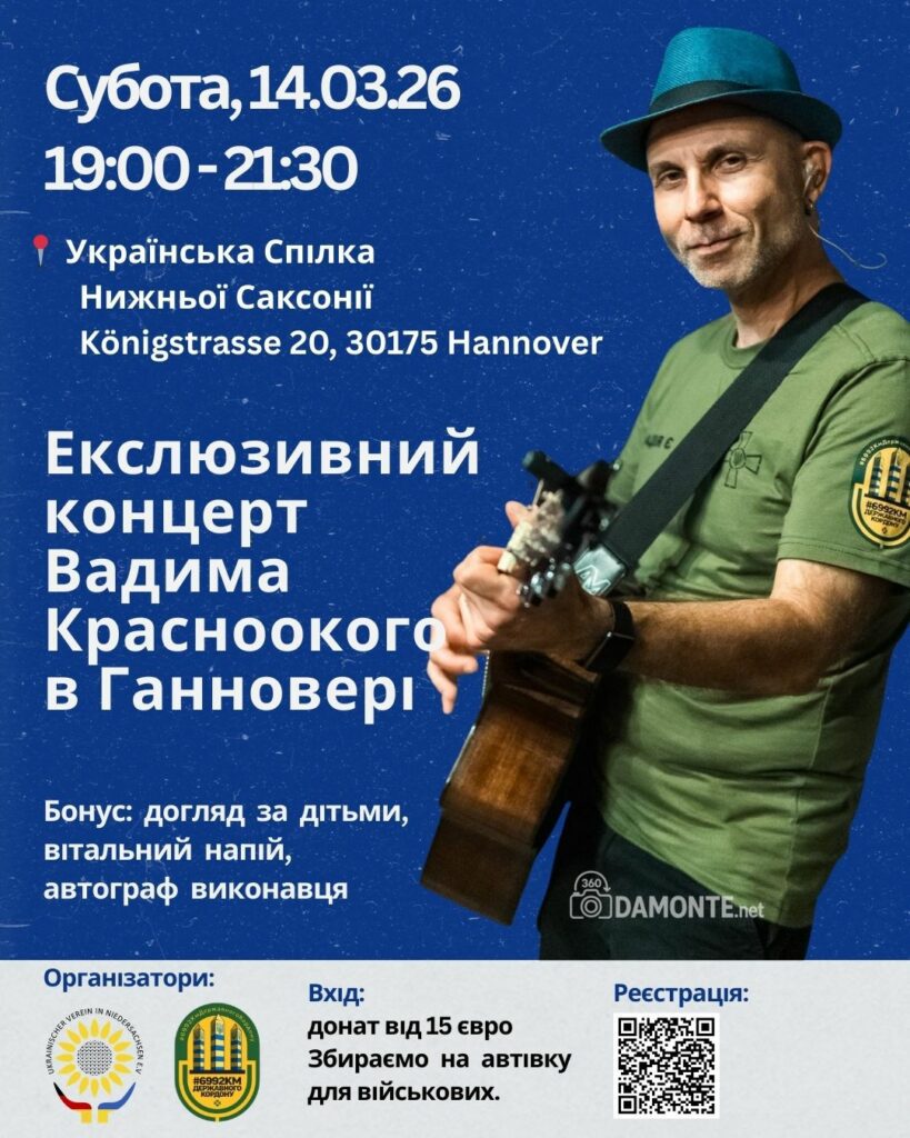 Liebe alle! Wir laden euch herzlich zum zweiten Benefizkonzert „Es gibt Hoffnung.“ mit dem ukrainischen Musiker Vadym Krasnooky (Frontmann der legendären Band Mad Heads) ein.