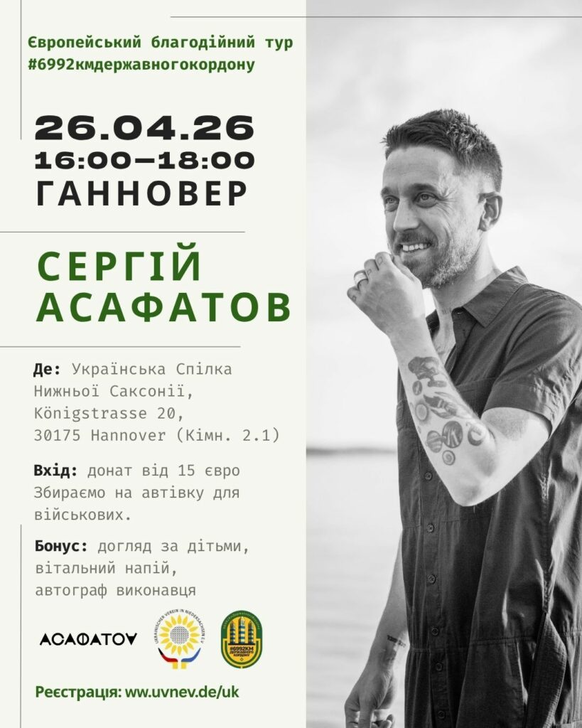 Das Konzert findet im Rahmen der Wohltätigkeitstour #6992кмдержавногокордону zur Sammlung von Kosten für den Einkauf von Autos für ukrainische Militär statt.
