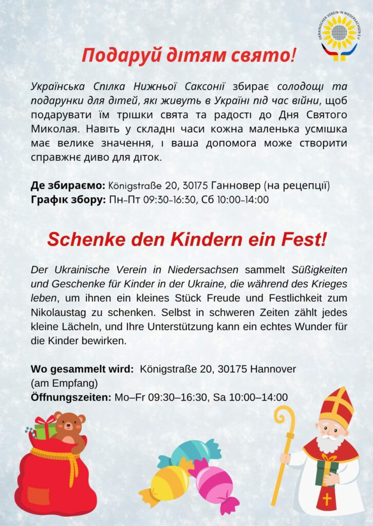 Der Ukrainische Verein in Niedersachsen e.V. sammelt zum Nikolaustag Süßigkeiten und Geschenke für Kinder in der Ukraine