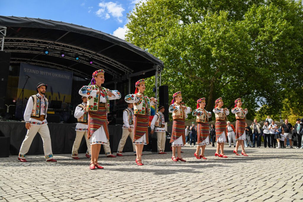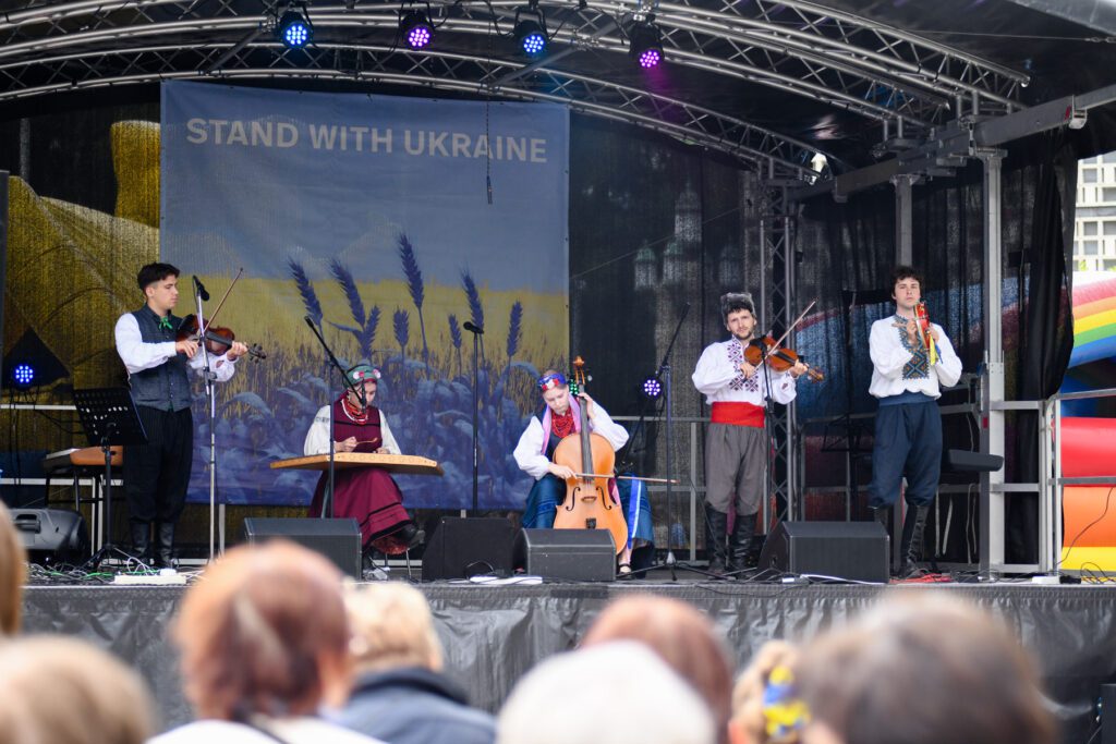 Damit das Festival zu einem lebendigen und herzlichen Ereignis wurde, arbeiteten über 200 Ehrenamtliche vom frühen Morgen bis in den späten Abend. Dank ihres Engagements entstand eine Atmosphäre von Wärme und Zusammenhalt. Besonders beeindruckend war der vielfältige Markt mit ukrainischen Produkten – von bestickten Blusen und Schmuck bis hin zu traditionellen Köstlichkeiten. Am Stand des Ukrainischen Vereins erwartete die Gäste eine kleine „Reise nach Hause“ – der Duft ukrainischer Speisen erfüllte die Luft und vermittelte ein Gefühl von Vertrautheit.
