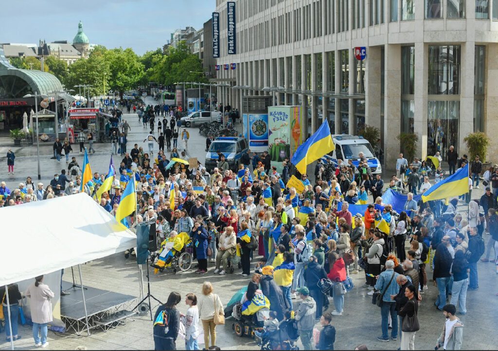Unter dem Motto #standwithukraine fand im Stadtzentrum von Hannover eine große Kundgebung. Zahlreiche politische Vertreter*innenhielten Reden: