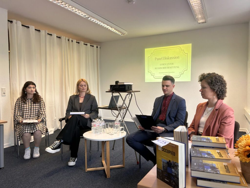 Im Ukrainischen Verein in Niedersachsen fand eine intensive Diskussion über das Leben unter russischer Besatzung statt. Die Veranstaltung begann mit der Vorführung eines kurzen dokumentarischen Films über die ukrainische Journalistin Viktoriia Roshchyna, die verschleppt und in russland zu Tode gefoltert wurde. Der Film verdeutlichte die Gefahren, denen ukrainische Journalist*innen ausgesetzt sind, sowie den hohen Preis der Wahrheit im Krieg. Im Anschluss fand eine Podiumsdiskussion mit Augenzeug*innen und Expert*innen statt. Die Teilnehmenden berichteten über persönliche Erfahrungen, Formen des Widerstands und die täglichen Herausforderungen, mit denen Menschen in den vorübergehend besetzten Gebieten der Ukraine konfrontiert sind. Videobericht: https://youtu.be/ldHJD4IiGqc