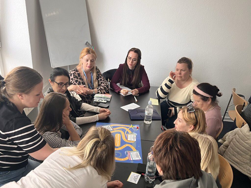 Дискусійна гра є інтерактивним інструментом, створеним на основі реальних ситуацій українських біженців у Німеччині. Вона охоплює п’ять сфер: робота, освіта, житло, державні установи та стратегії реагування.